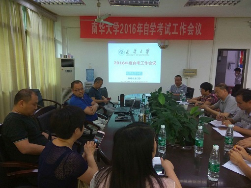 为切实做好我校自考助学班课程过程性考核和课程学分认定工作,进一步明确办学方向,更好地推动我校自考助学工作稳步、健康、有序地发展, 2016年6月29日在南华大学继续教育学华体会平台二楼会议室召开南华大学2016年度高等教育自学考试工作会议。