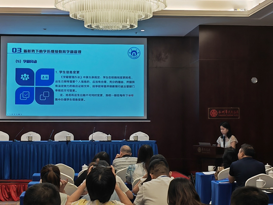 工作会议之后,由继续教育华体会平台赵桂芝副院长主持,会议进行了三个业务专题培训。继续教育华体会平台招生与教务办公室主任汤晓兰、校外教学点管理办公室主任彭金生和湖南世纪超星公司刘人洋分别做了《新形势下南华大学校外教学点教学与学籍管理》《新时代下南华大学教学点设置与管理》;《南华大学校外教学信息化管理系统操作》专题培训。